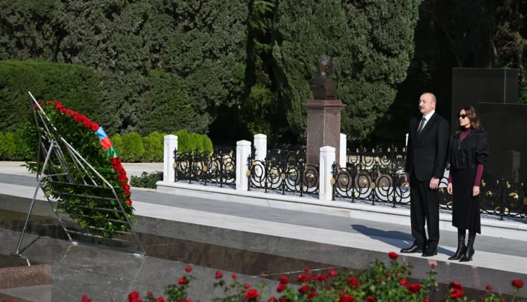 Oxu.Az AZƏRTAC-a istinadən xəbər verir ki, Prezident İlham Əliyev ulu öndərin məzarı önünə əklil qoyaraq xatirəsini ehtiramla anıb.