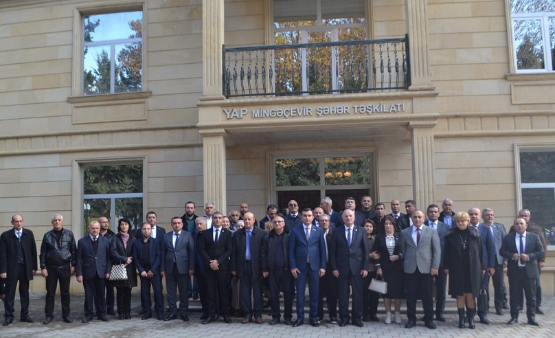 Mingəçevir şəhər İcra Hakimiyyətinin başçısı İlham İsmayılov partiyanın yarandığı mürəkkəb tarixi-siyasi şəraitdən, keçdiyi çətin və şərəfli mübarizə yolundan, Heydər Əliyevin xalq, dövlət qarşısında göstərdiyi böyük xidmətlərdən danışaraq qeyd edib ki, Azərbaycanda dövlətçiliyin möhkəmlənməsi və demokratik prinsiplərin bərqərar olmasının, hüquqi, dünyəvi dövlət quruculuğu prosesinin uğurla həyata keçirilməsi dahi rəhbər Heydər Əliyevin adı ilə bağlıdır. Vurğulayıb ki, ümummilli lider Heydər Əliyevin ölkənin siyasi, iqtisadi, ictimai və mədəni həyatının bütün sahələrində gördüyü işlər Azərbaycanı inkişaf yoluna çəkib.